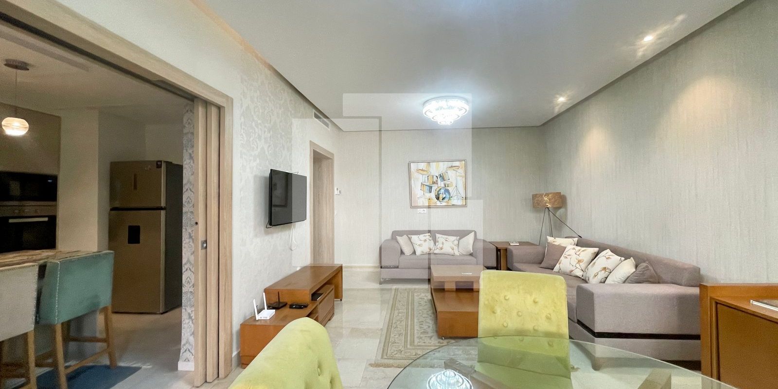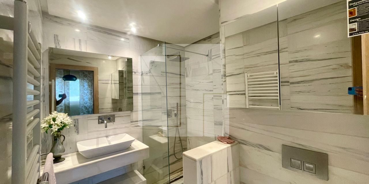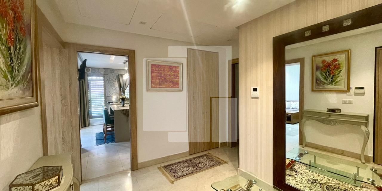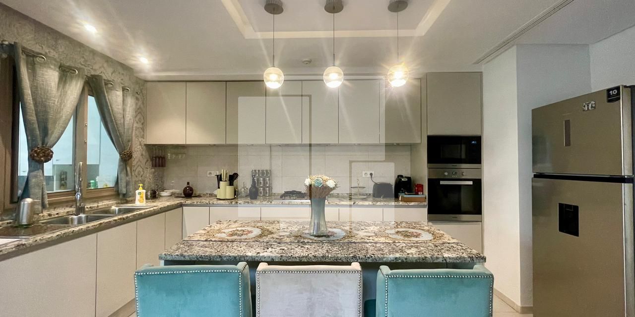 L’appartement lui-même se distingue par son architecture raffinée et son aménagement intérieur luxueux. Dès l’entrée, vous serez charmé par la luminosité et l’espace généreux qui se déploient. La partie jour, conçue pour la convivialité et le confort, se compose d’un vaste salon élégant, idéal pour se détendre et recevoir vos invités. Le coin repas, adjacent au salon, est parfait pour partager des moments agréables autour de repas conviviaux. Une cuisine entièrement équipée, véritable écrin de modernité et de fonctionnalité, vous permettra de préparer vos plats préférés avec aisance. Elle dispose d’un choix d’électroménagers haut de gamme, témoignant d’un souci du détail et d’une qualité irréprochable. Une salle d’eau pour les invités, discrètement aménagée, complète cet espace de réception.