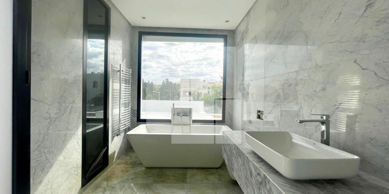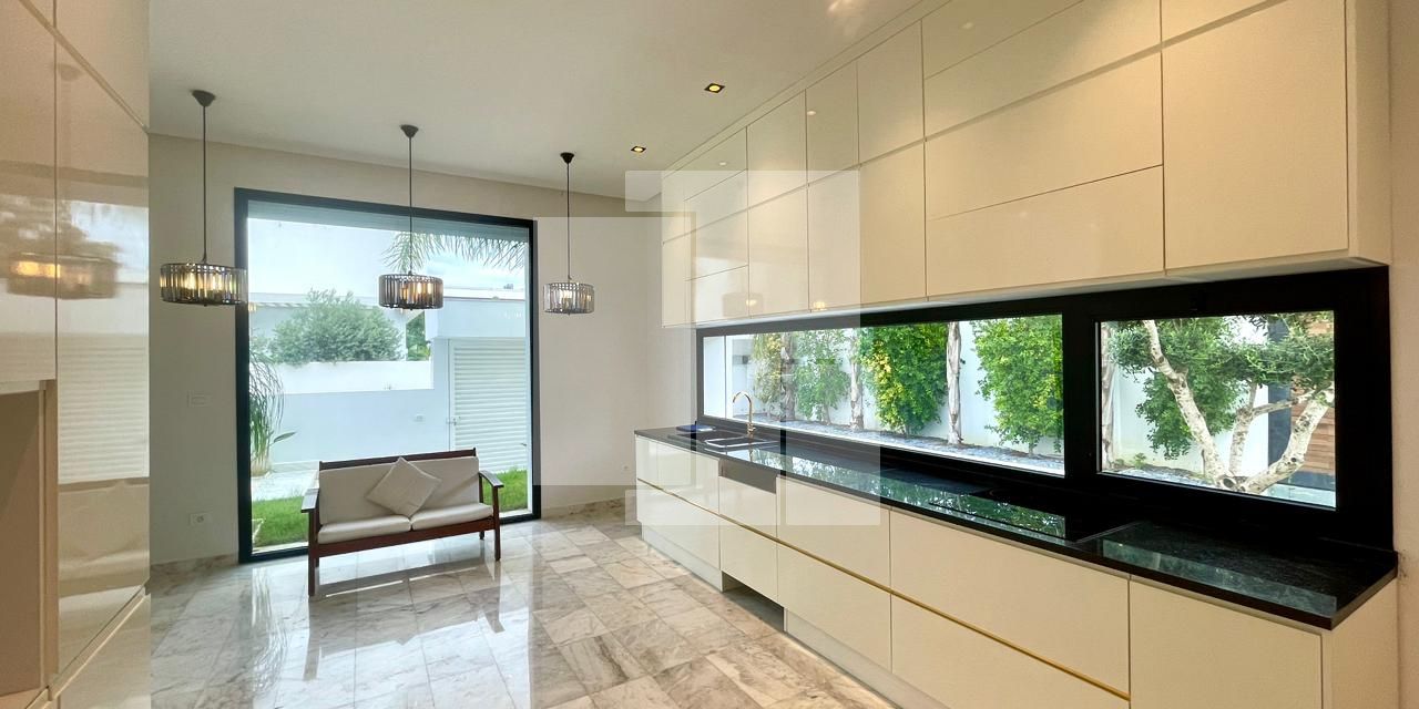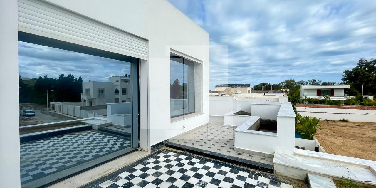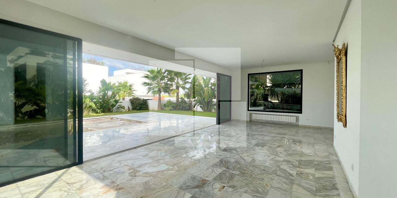 Construite récemment avec des matériaux nobles et de haute qualité, la villa se distingue par son excellente orientation et sa luminosité remarquable, grâce à ses 35 baies vitrées judicieusement réparties dans l’ensemble des pièces.