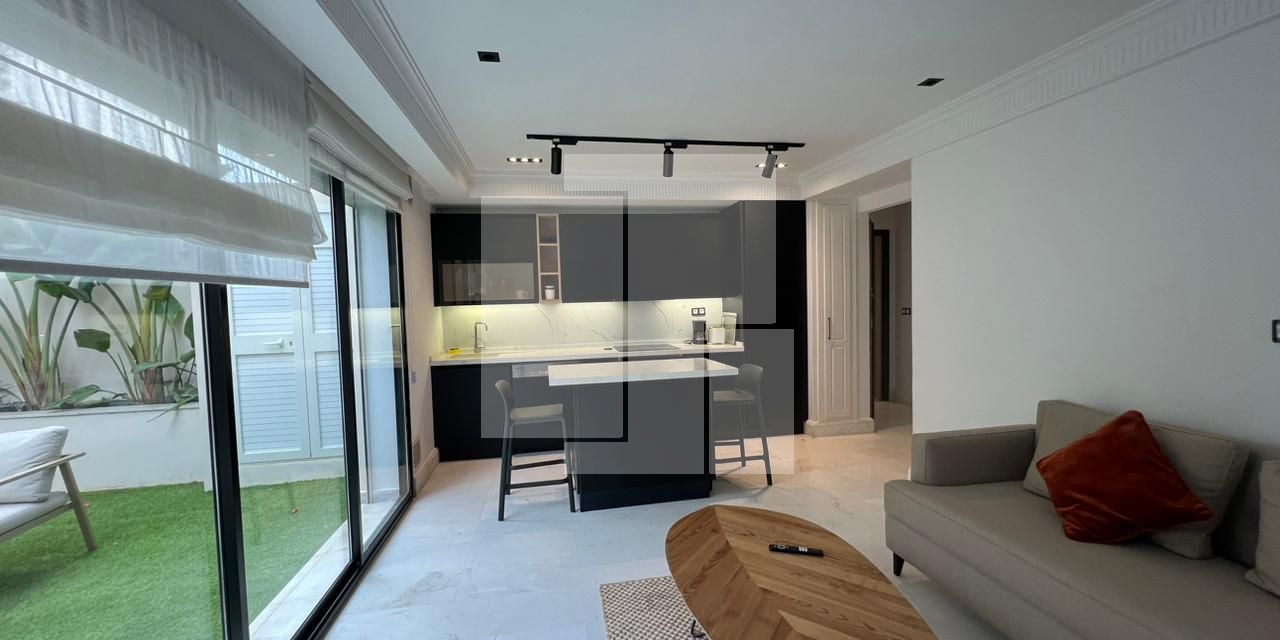 L’appartement se compose d’un salon spacieux et baigné de lumière naturelle, agrémenté d’un jardin artificiel qui apporte une touche de verdure et de sérénité à l’intérieur. Ce détail ingénieux crée une ambiance relaxante et invite à la détente après une longue journée. La pièce est suffisamment grande pour accueillir confortablement un salon complet, un espace repas et même un coin bureau si besoin. L’agencement optimisé maximise l’espace disponible, favorisant une circulation fluide et agréable.