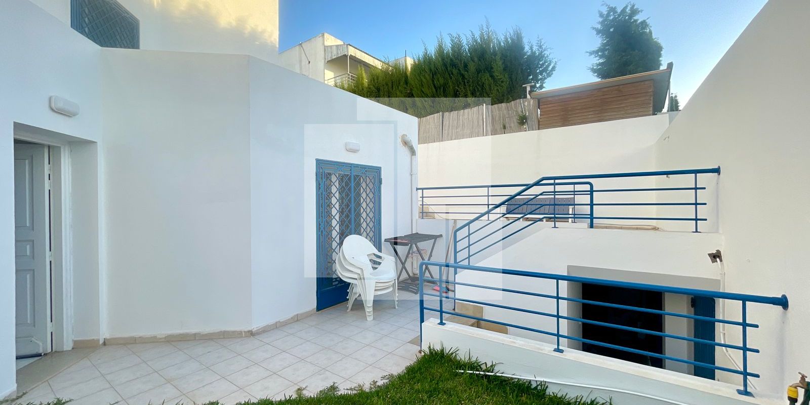 La villa est située dans un quartier résidentiel à Gammarth Supérieur.