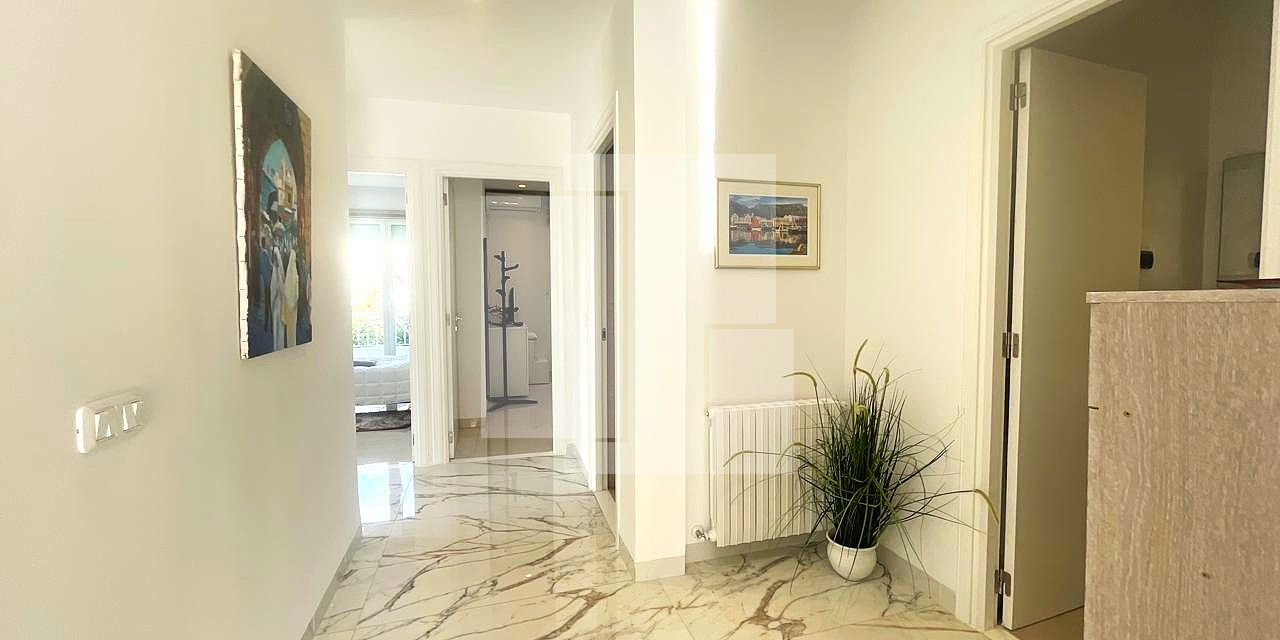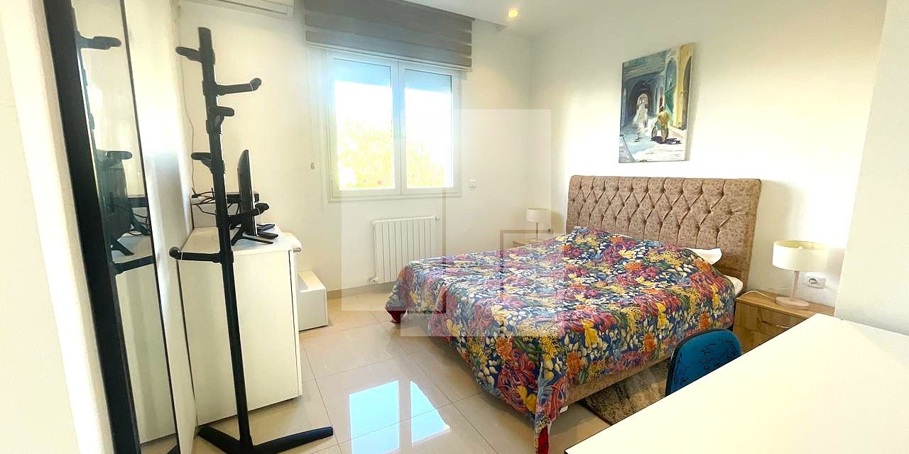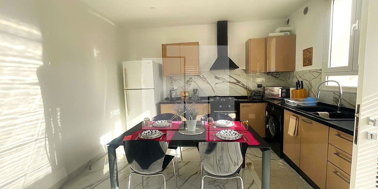 Cet étage de villa est proposé entièrement meublé, offrant des prestations haut de gamme qui sauront satisfaire les exigences les plus élevées en matière de confort et d’élégance. L’intérieur, au design soigné et contemporain, se distingue par des finitions impeccables et une atmosphère chaleureuse. Il s’ouvre sur un vaste salon, spacieux et baigné de lumière naturelle, créant un espace de vie convivial et raffiné, parfait pour la détente ou les réceptions. Adjacent, un espace salle à manger distinct complète harmonieusement le séjour.