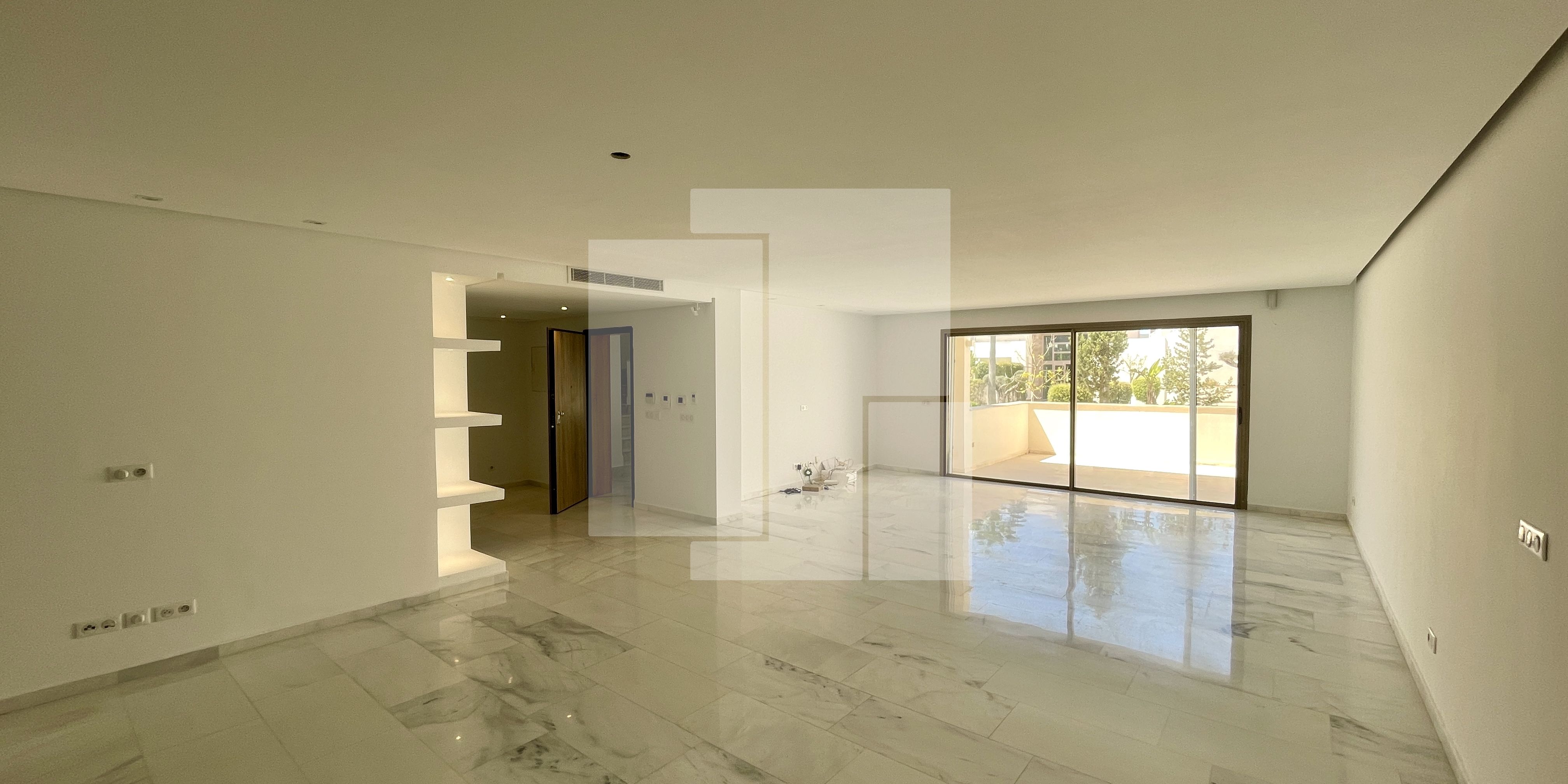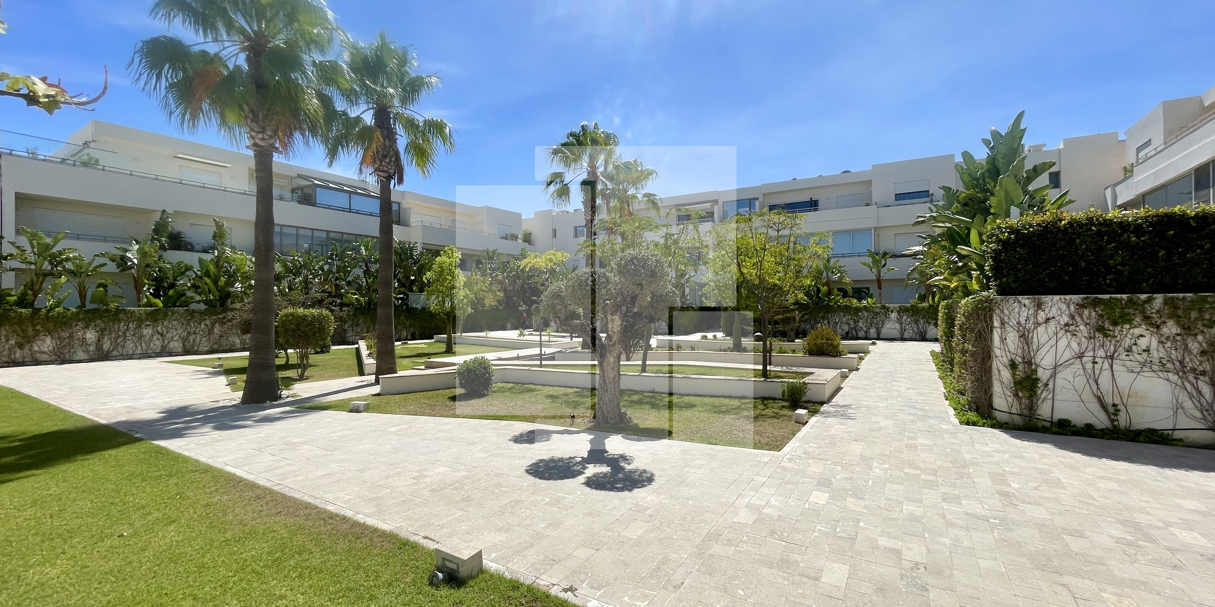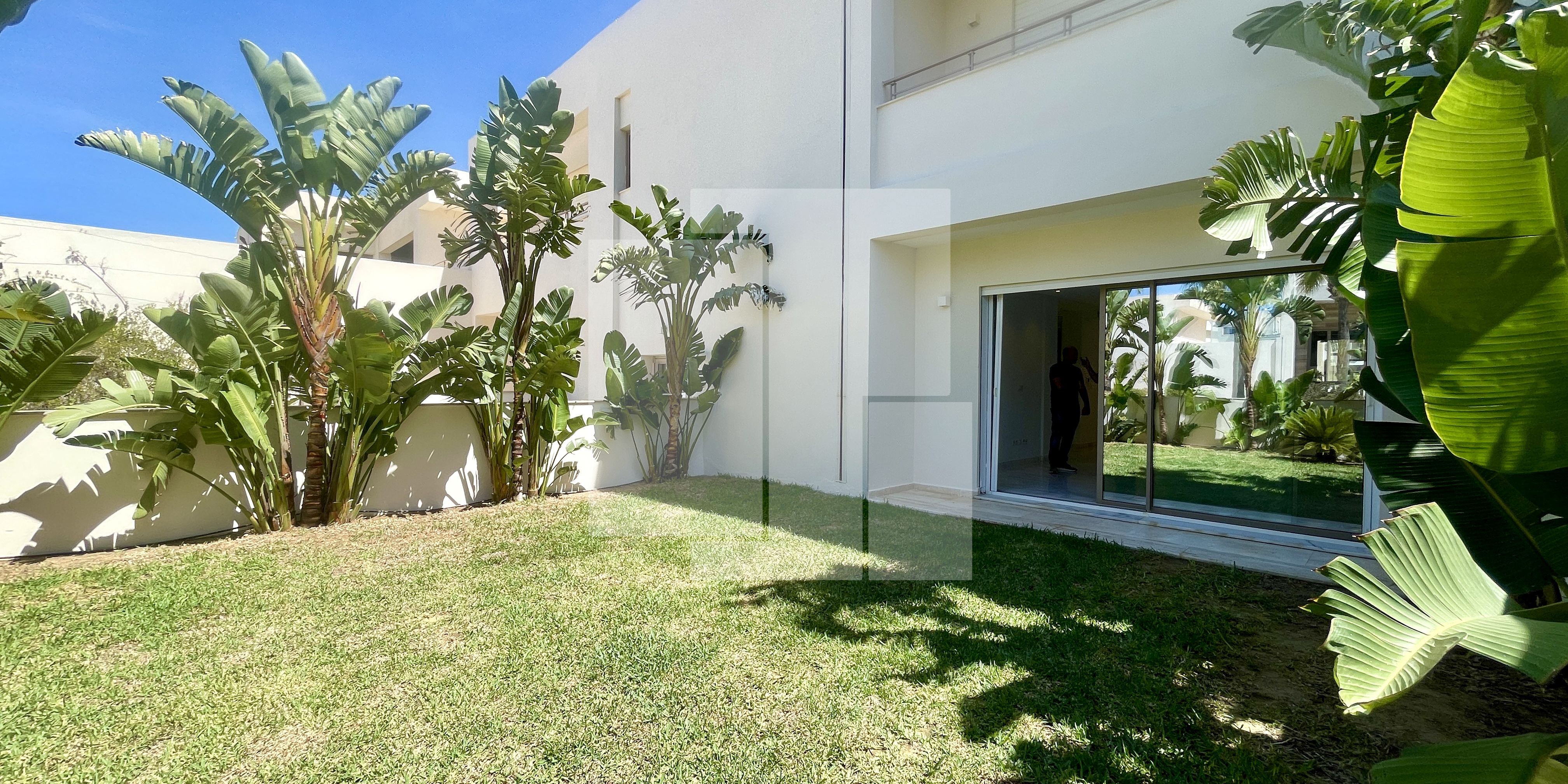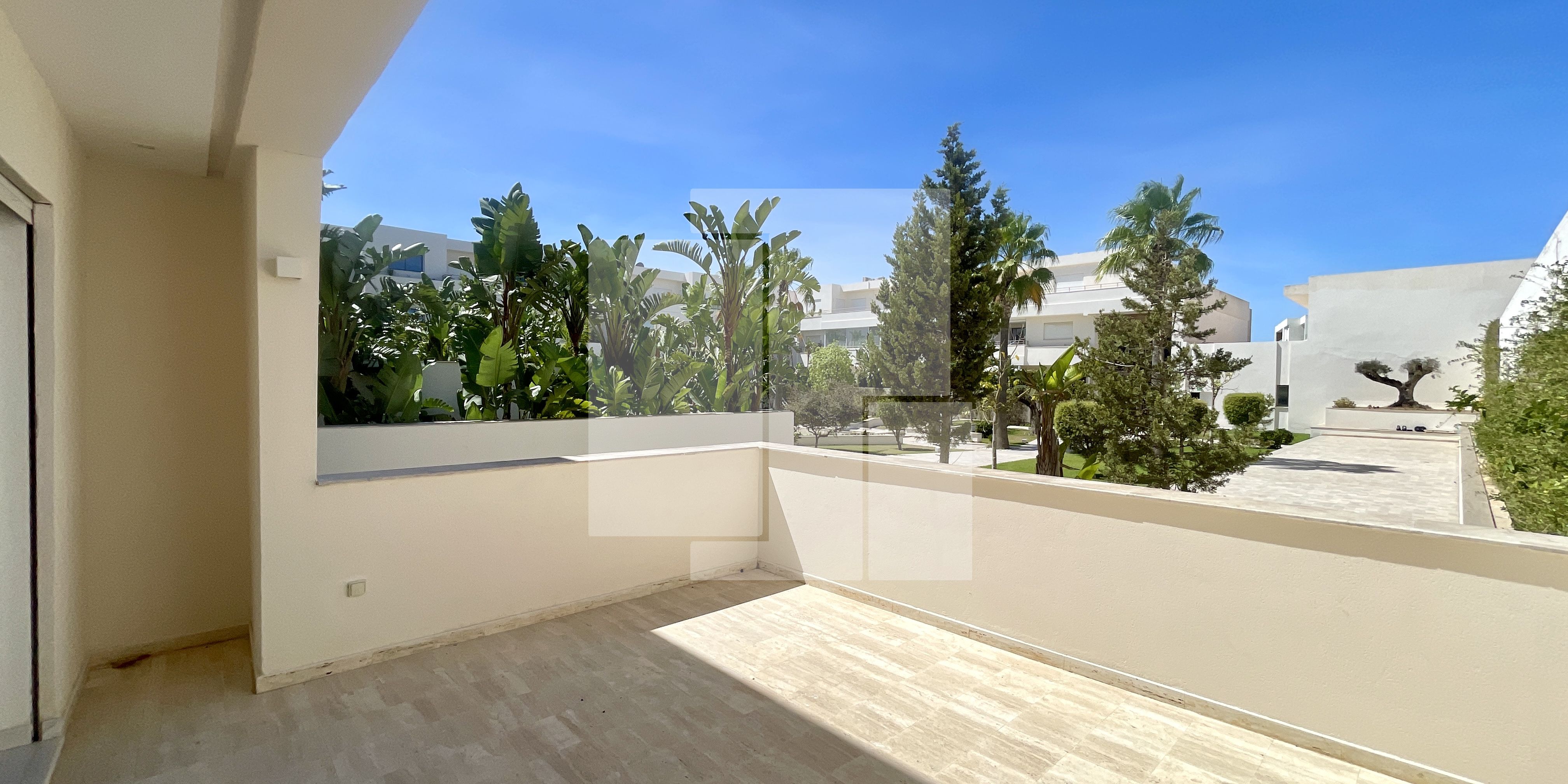 L’appartement est situé au rez-de-chaussée d’une résidence R+2 calme et sécurisée dans la zone touristique de Gammarth.