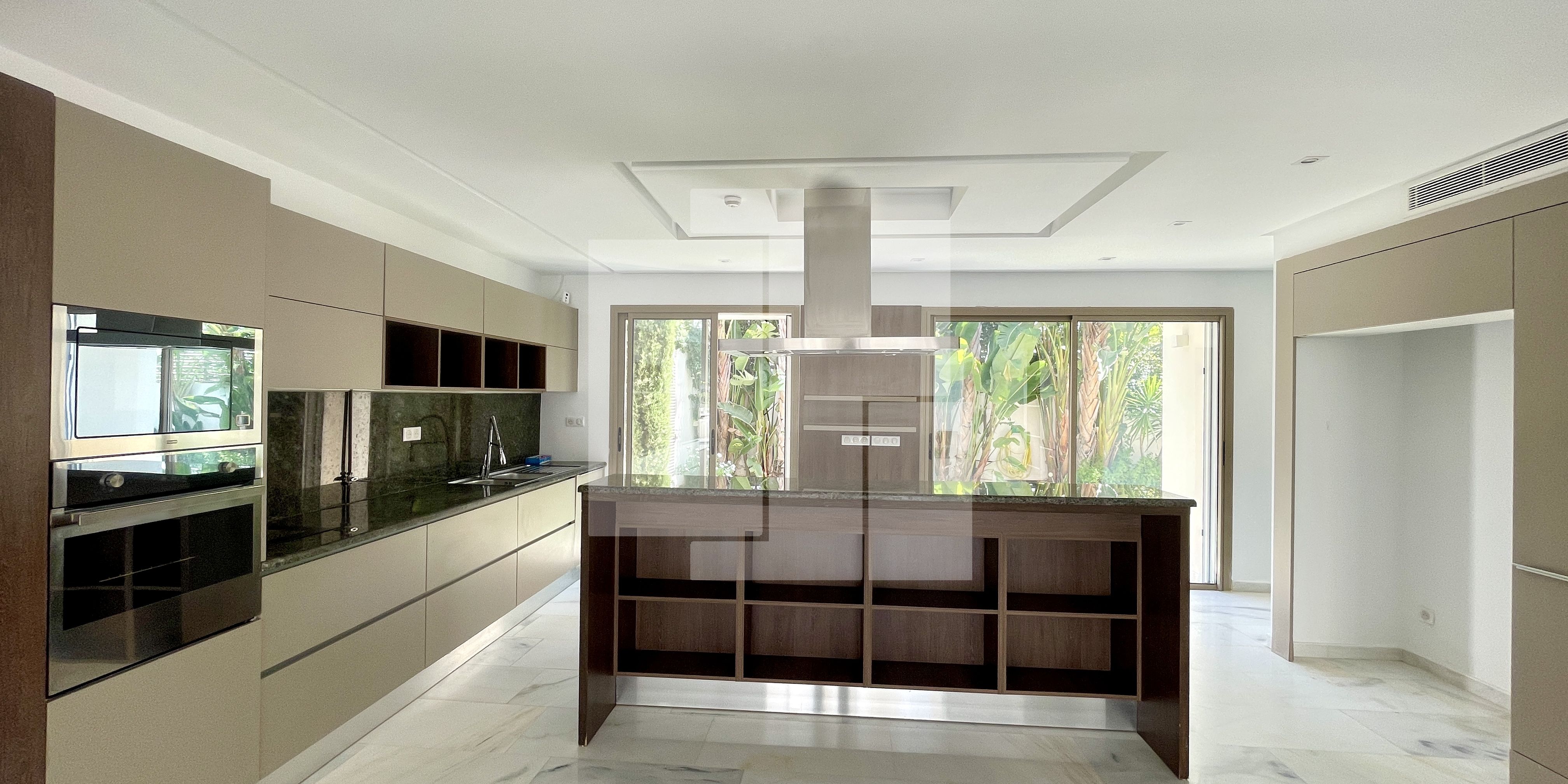 La partie jour s’ouvre sur un salon donnant sur une terrasse, une salle à manger, une cuisine équipée, une salle d’eau et une suite de service. La partie nuit abrite deux suites avec leurs salles de bain et dressing.