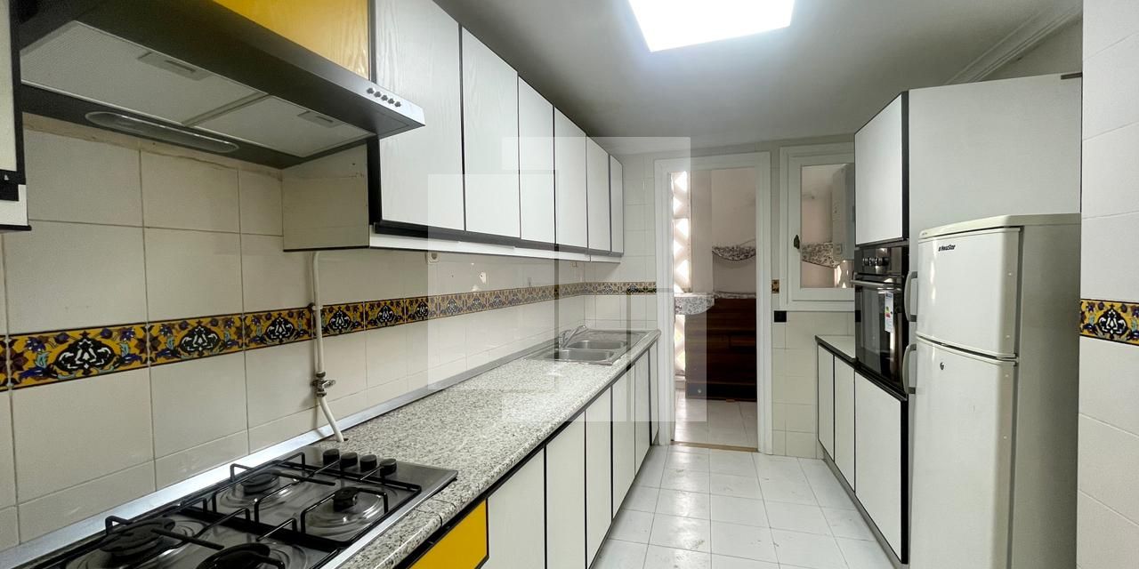 Il se compose d’un salon lumineux avec deux balcons, d’une cuisine équipée, d’une salle d’eau pour les invités, ainsi que de trois chambres, dont deux avec placards intégrés, et d’une salle d’eau avec douche.