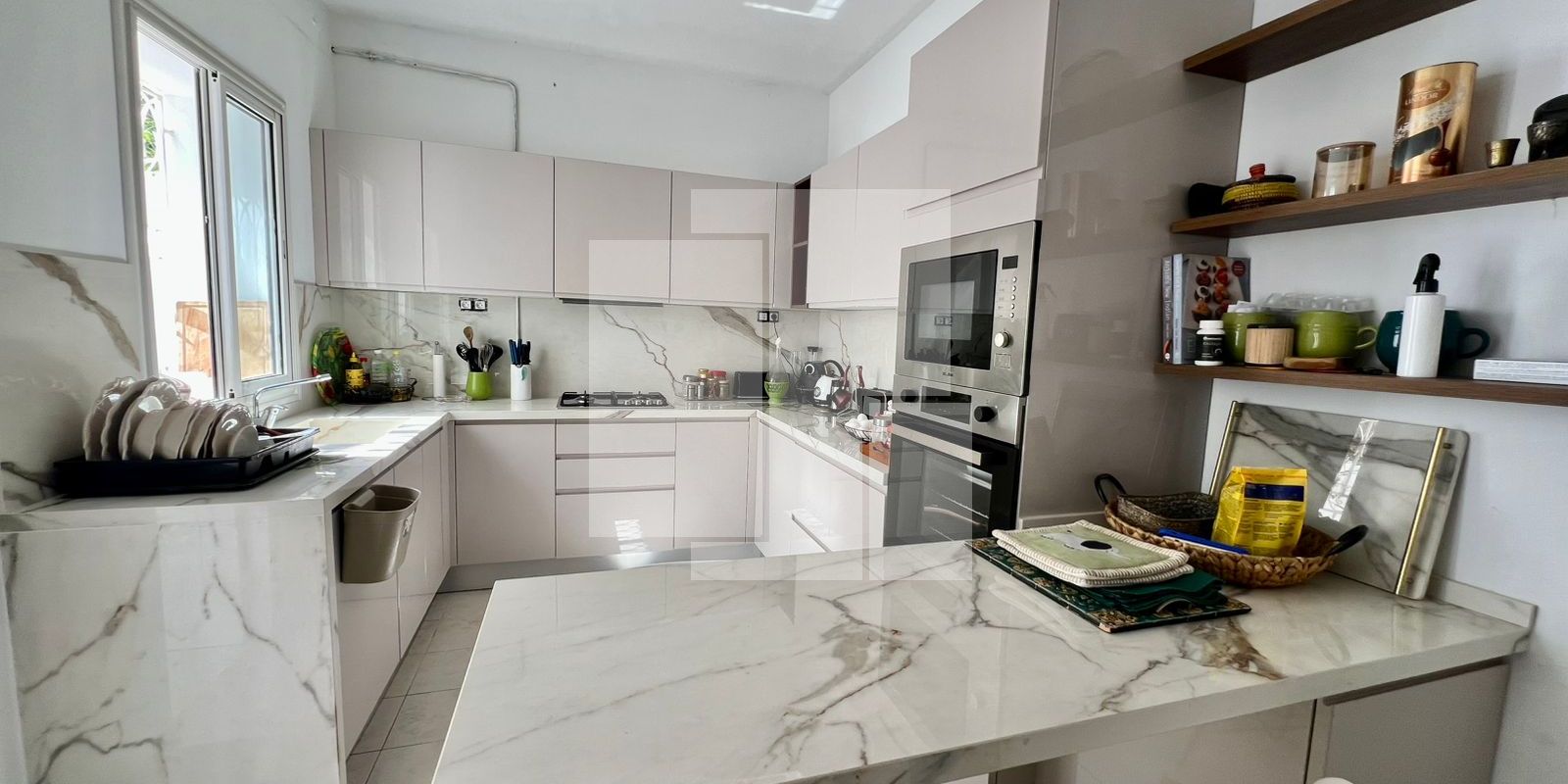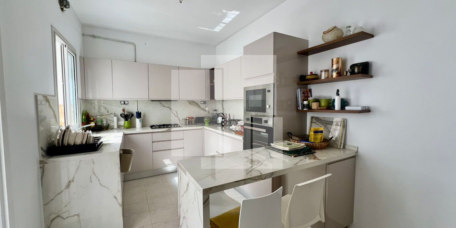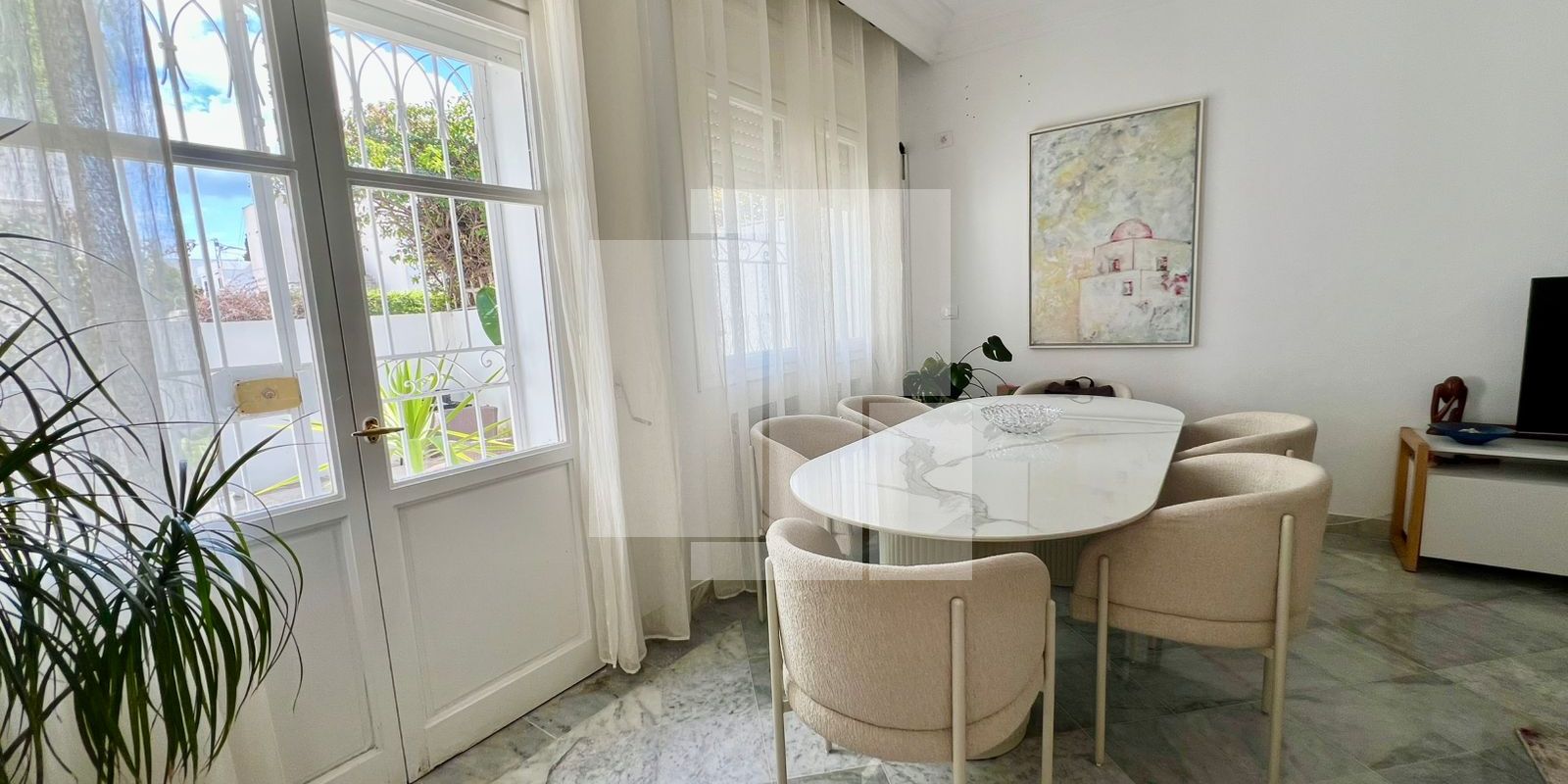 Ce duplex est bien situé à La Marsa, dans la cité du Stade. Il a été rénové en 2025. Il se compose comme suit : au rez-de-chaussée, on trouve un petit jardin, un salon lumineux donnant sur le jardin, une cuisine bien équipée avec un séchoir, ainsi qu’un point d’eau pour les invités. Au premier étage, on trouve trois chambres à coucher spacieuses, chacune avec un dressing. Elles se partagent une salle d’eau avec une douche à l’italienne. L’appartement est titré individuellement.